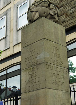 Denkmal gesetzt – nirgendwo gibt es köstlichere Äpfel, ist auf der Stele zu lesen, und nirgendwo besseren Cider.